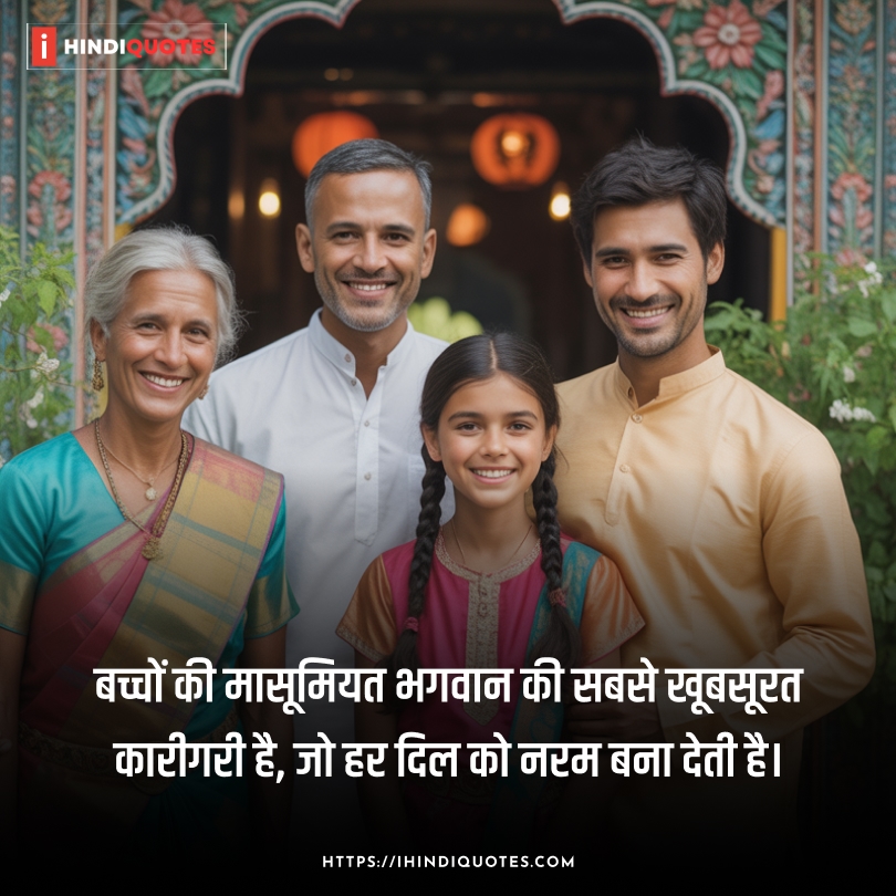 बच्चों की मासूमियत भगवान की सबसे खूबसूरत कारीगरी है, जो हर दिल को नरम बना देती है।
